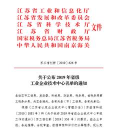2019年11月,江蘇省工信廳公布了2019年省級(jí)工業(yè)企業(yè)技術(shù)中心名單。